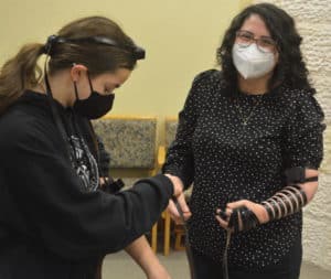 This week, I led tefillin workshops with the fifth and sixth graders in our Beth El Religious School. I taught them about tefillin and demonstrated by wrapping tefillin myself, as a woman rabbi. Then, in small groups, I invited each of them to wrap tefillin. Most of the children chose to participate, and we all had fun!
