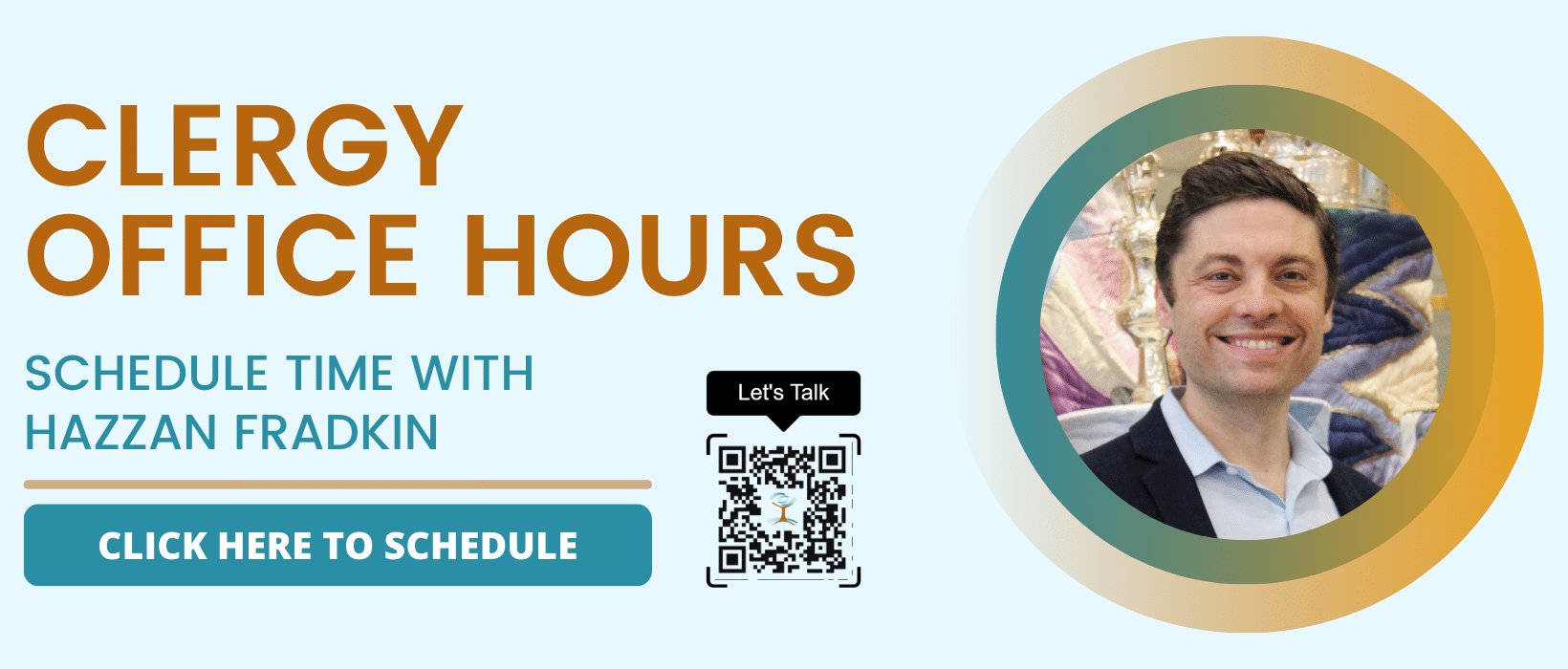 According to Hazzan Fradkin, the most rewarding part of his job is building community and being actively involved in congregational life. He places strong value on establishing relationships with members of all age groups – with those experiencing joyous life cycle events as well as with the sick and bereaved. He strives to “rouse the soul,” to make prayer a moving and spiritual experience for all congregants.