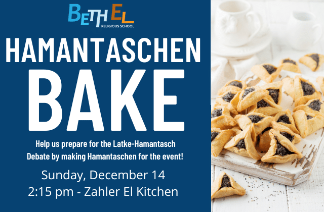 December 14 at 2:15 pm Hamantaschen Bake Congregation Beth El 8215 Old Georgetown Rd, Bethesda, MD, United States Join Allison and your Beth El friends for an afternoon of baking fun! We will be making hamantaschen for the snack after the Latke-Hamantasch Debate. Please RSVP using the form below. Questions? Contact Allison Brown at abrown@bethelmc.org.