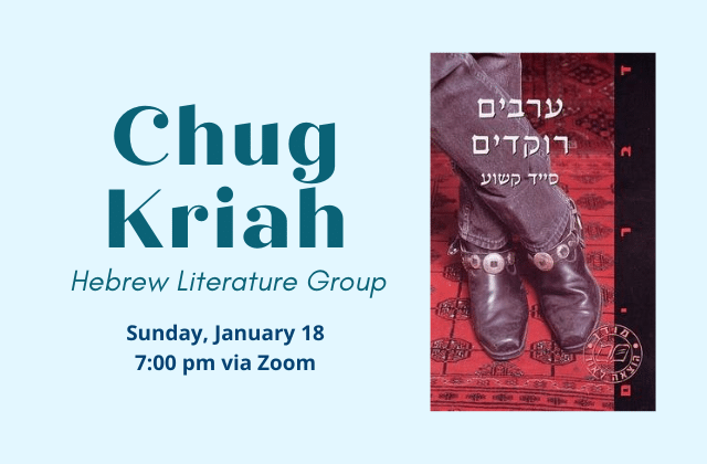 Featured December 7, 2025 at 7:00 pm Chug Kriah Chug Kriah meets bi-weekly to read and discuss modern Israeli literature in Hebrew. Our next meeting will be on Zoom on December 7 at 7:00 pm. We are reading Im ...