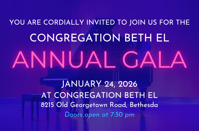 We are overjoyed to invite members, family, and friends to A Night Out, Beth El’s 2026 Gala, on Saturday, January 24 at 7:30 pm.  Come join our vibrant community for an evening full of connection, entertainment, and spirit. The evening will feature a lively performance by Felix and Fingers Dueling Pianos, a Tel Aviv-style nightclub after party, the return of our Silent Auction, and more! Click here for detailed information and fill out the form below to join us!