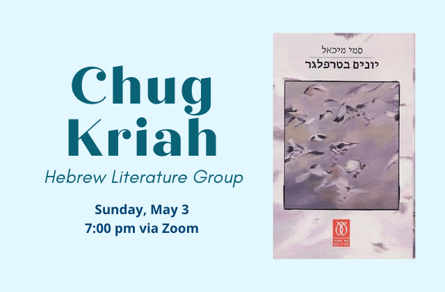 Chug Kriah Featured May 3 at 7:00 pm Chug Kriah meets regularly to read and discuss modern Israeli literature in Hebrew. Our next meeting will be on Sunday, March 22, at 7:00 pm via Zoom. We will complete ...