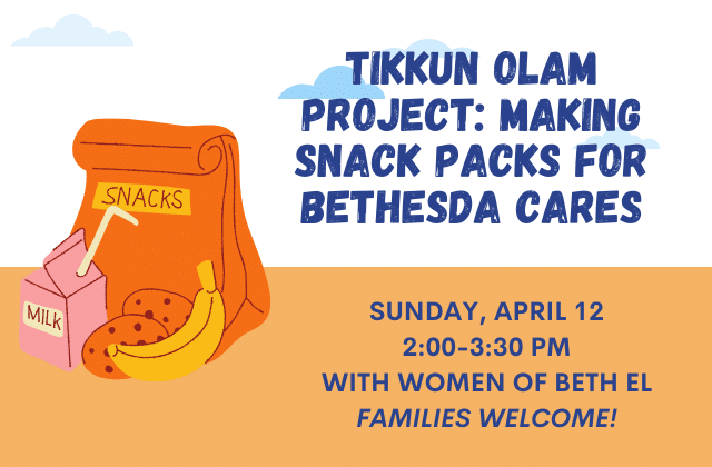 Women of Beth El will be packing treats for Bethesda Cares for Good Deeds Day. Volunteers of all ages needed to help package up the treats.