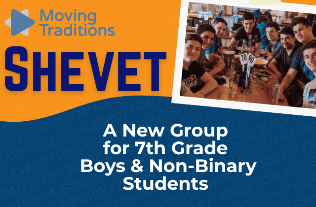 Featured September 28 at 12:00 pm Shevet Congregation Beth El 8215 Old Georgetown Rd, Bethesda, MD, United States Shevet is a monthly program designed for seventh grade boys and youth who identify with boyhood or outside the gender binary. In this supportive group, participants build friendships and explore what it means to grow into their own identity—talking about real-life topics like masculinity, friendships, emotions, and Jewish values. Guided by a trained adult mentor, ...